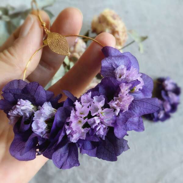 Des boucles d’oreilles d’une élégante douceur en fleurs naturelles pour affirmer votre look sensuel et gracieux.