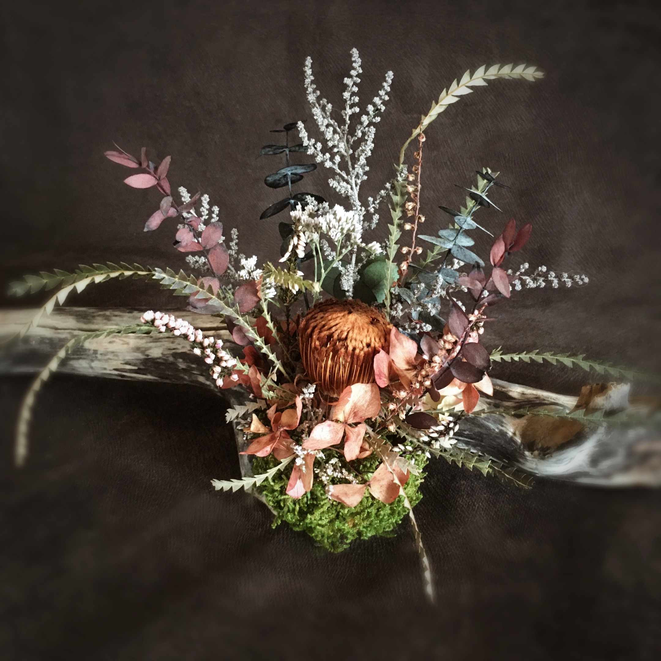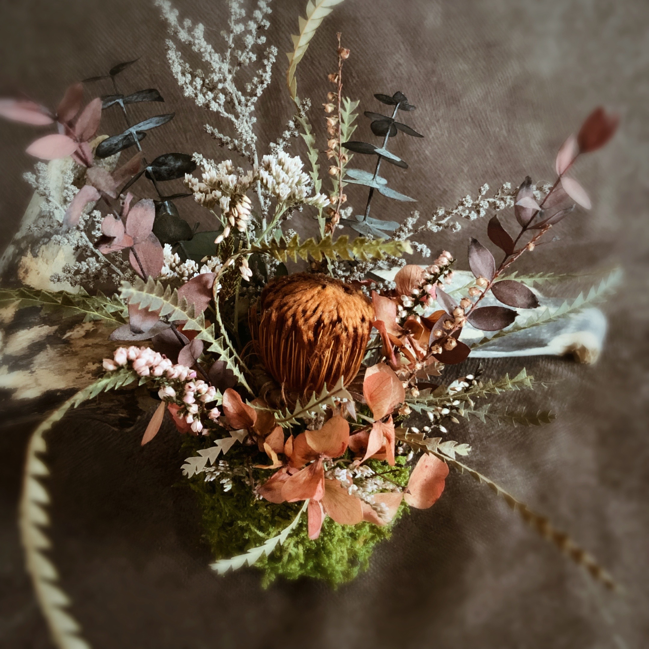 Constitué uniquement de plantes et fleurs naturelles stabilisées, ce mini kokedama trouvera aisément sa place dans votre décoration d’intérieur.